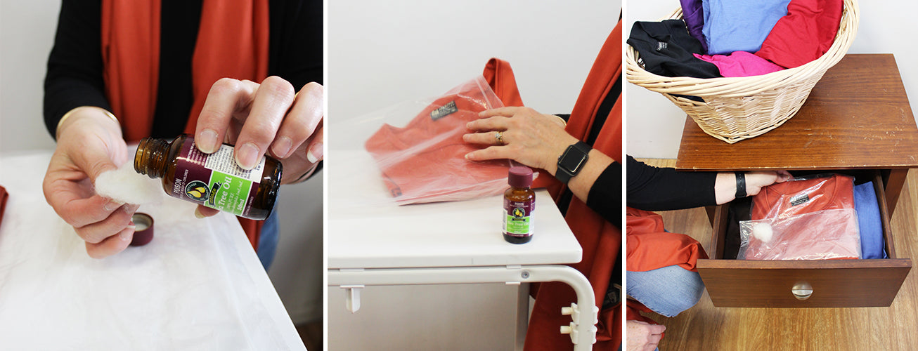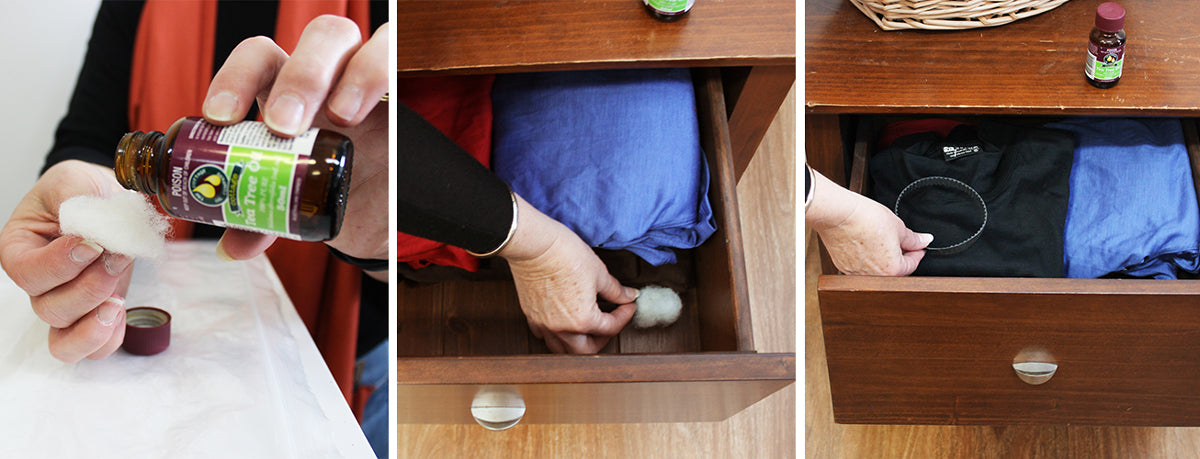 - Add lavender, eucalyptus, or tea tree oil on cotton balls to deter insects.
