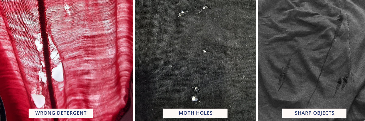 Merino Wool is a protein and in certain conditions bugs will eat it. Do not leave unwashed wool garments, particularly underwear, lying around for excessive periods of time in the laundry basket.